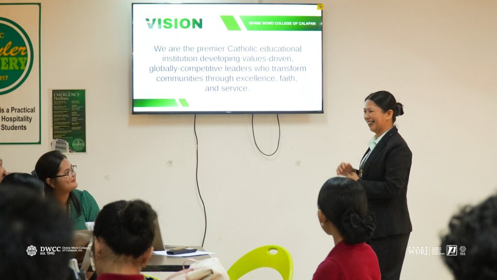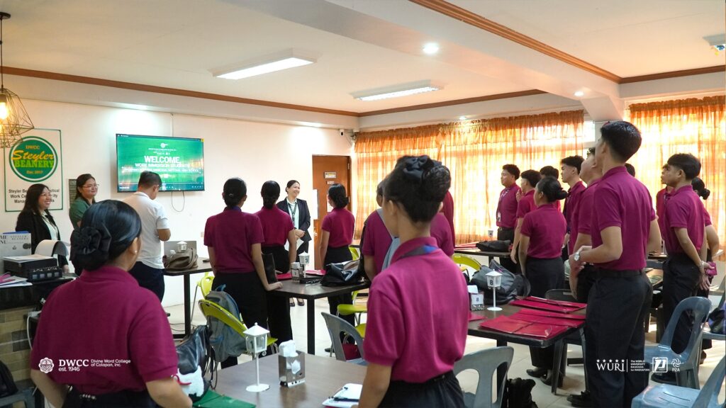 Divine Word College of Calapan, Inc. warmly welcomed twenty-one Work Immersion students from Porfirio G. Comia Memorial National High School (COMEHI) on December 1. The group was formally endorsed by Mr. Djhonder Noel Gutierrez and received by Ms. Claudette G. Sim, Internationalization and External Linkages Officer, who provided an introductory orientation about DWCCโs mission, programs, and opportunities.