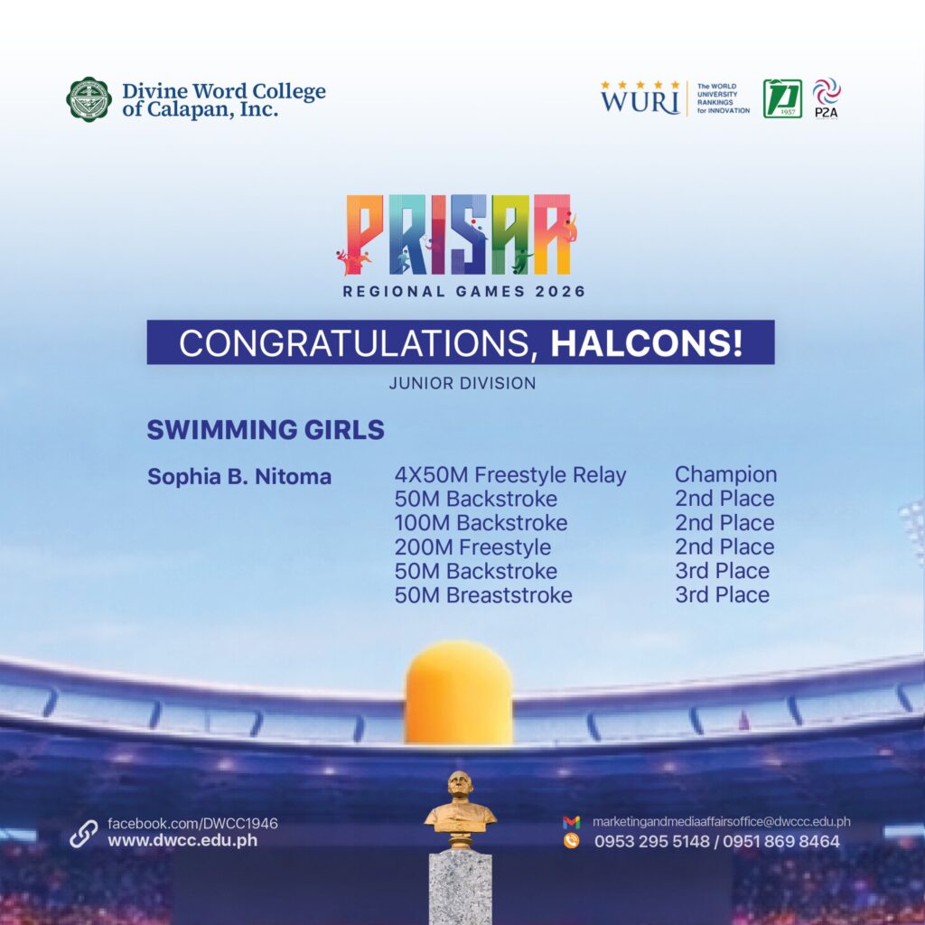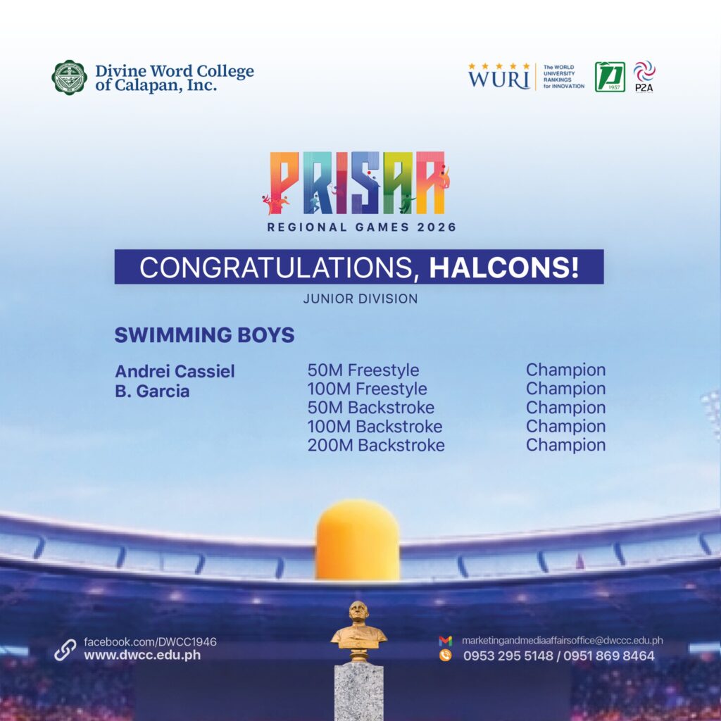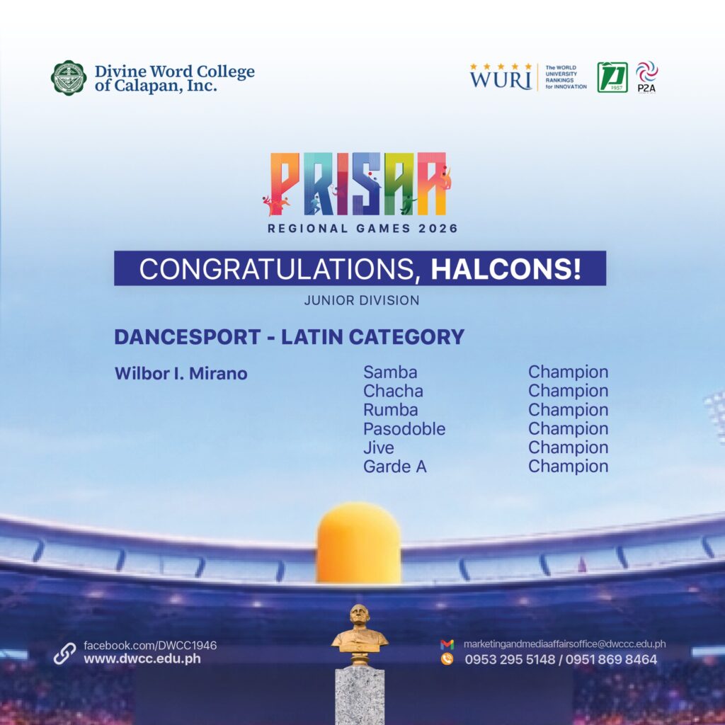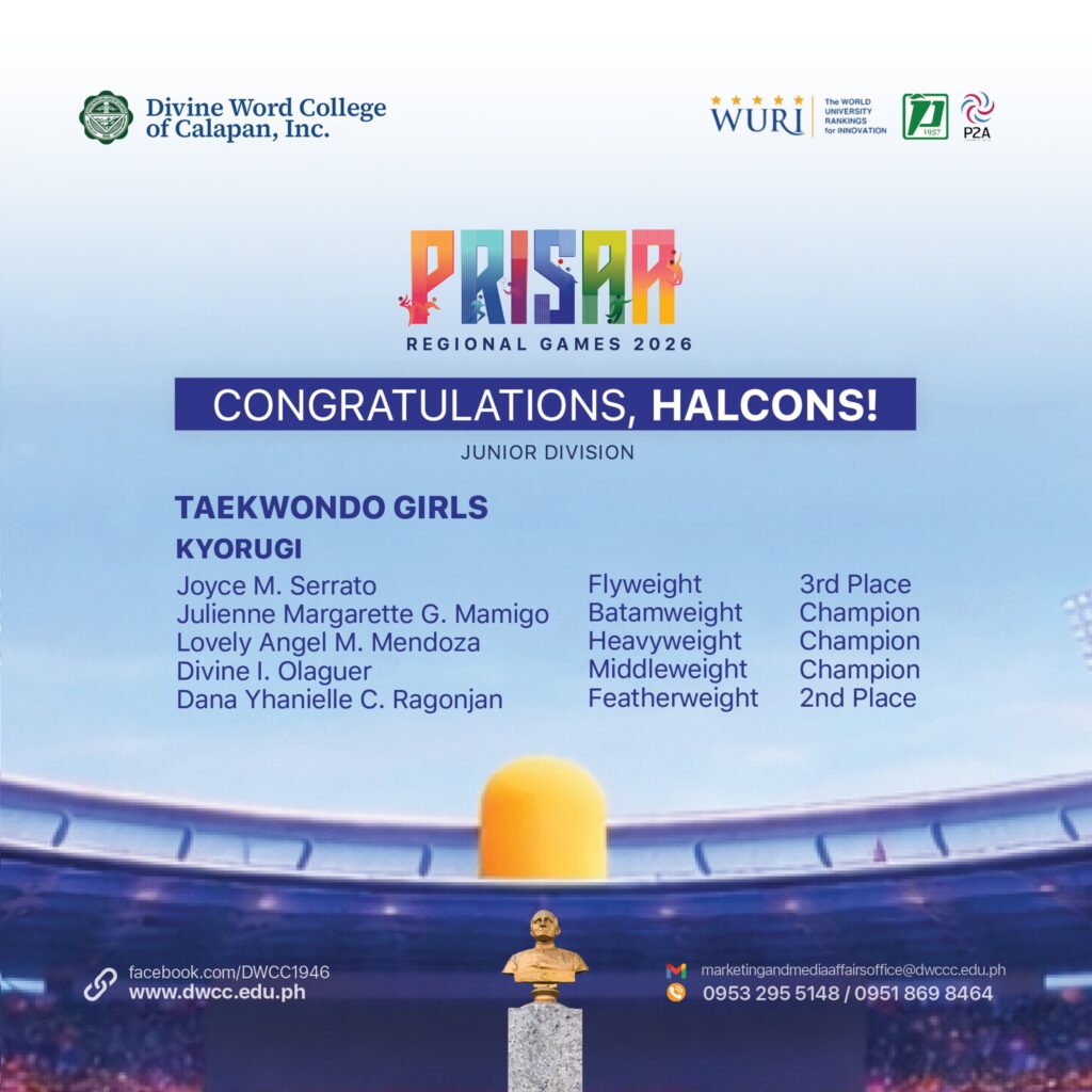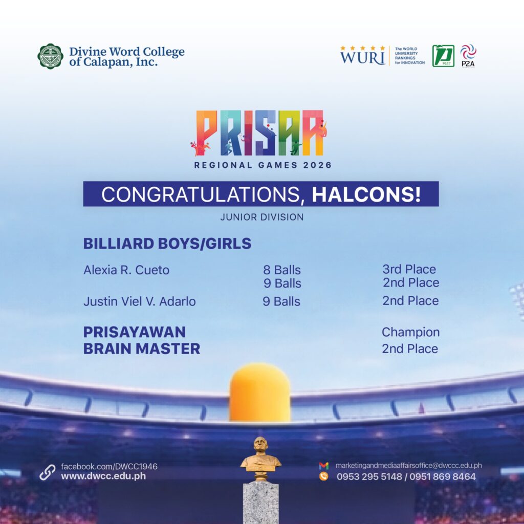 The Divine Word College of Calapan, Inc. proudly congratulates the DWCC Halcons Team for their commendable performance in the recently concluded PRISAA MIMAROPA Regional Games 2026.
