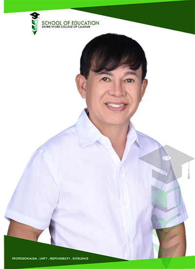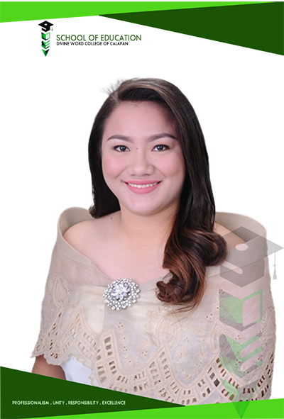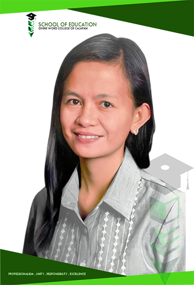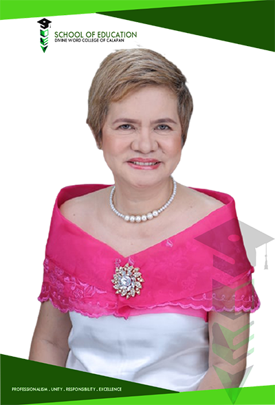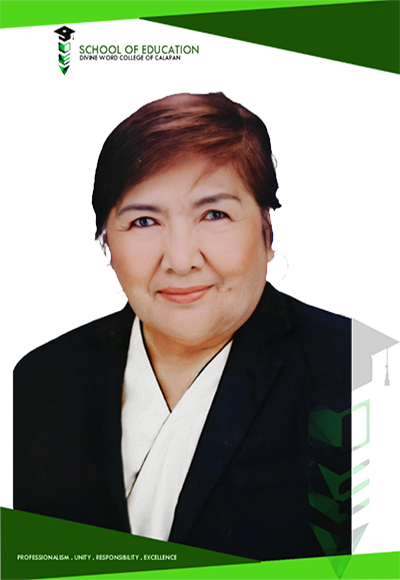Welcome to Divine Word College of Calapan School of Education. I am very delighted to welcome you to a diverse community of faculty, students, alumni, and community partners, all dedicated to creating life-changing opportunities through education. We are united by an unwavering commitment and professionalism to promote a Divinian education, anchored on the core values of Integrity, Social responsibility, Excellence, and Evangelization. Through various courses offered and led by dedicated, and experienced faculty mentors, we are preparing future teachers who are exceptionally prepared, inspired, and committed educators, leaders, educational supervisors that our learners deserve.