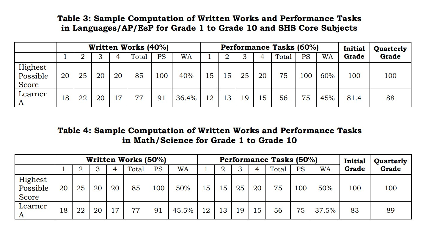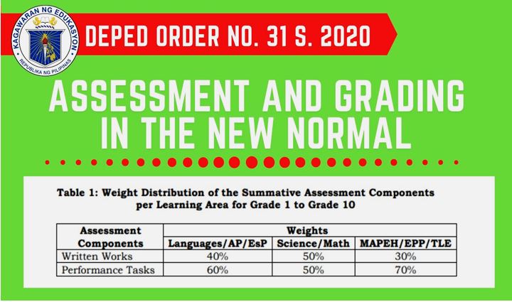The grading system of the Grade School was adapted from DepEd Order No. 031, series of 2020 with deviation from the transmutation table used by the public schools.