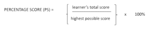 To do this, the Percentage Score is multiplied by the weight of the component found in the Table 4 for Grades 7-10 The product is known as the Weighted Score (WS).